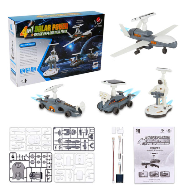El kit de energía solar 4 en 1 Flota de exploración espacial es un gran obsequio para niños, con el que podrán desarrollar su habilidad para la ciencias y la tecnología