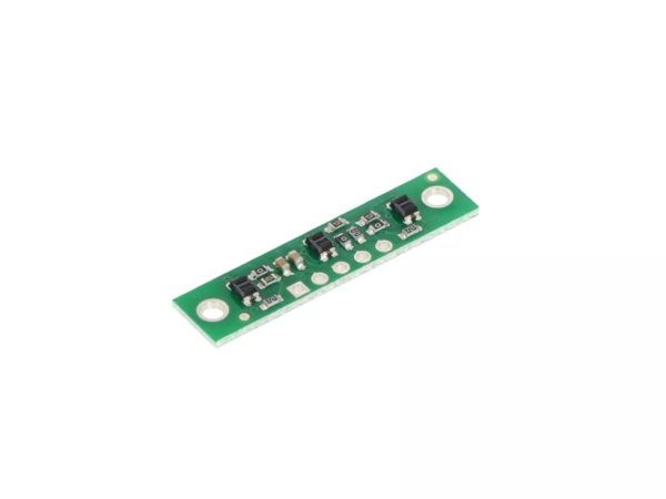 Este módulo compacto incluye tres pares IR / fototransistor en una placa de 1,25 «x 0,3». Los sensores están montados en un paso de 0,375 «, lo que convierte a esta matriz en una excelente solución de detección mínima para un robot de seguimiento de línea. Cada sensor proporciona una salida de tensión analógica separada .